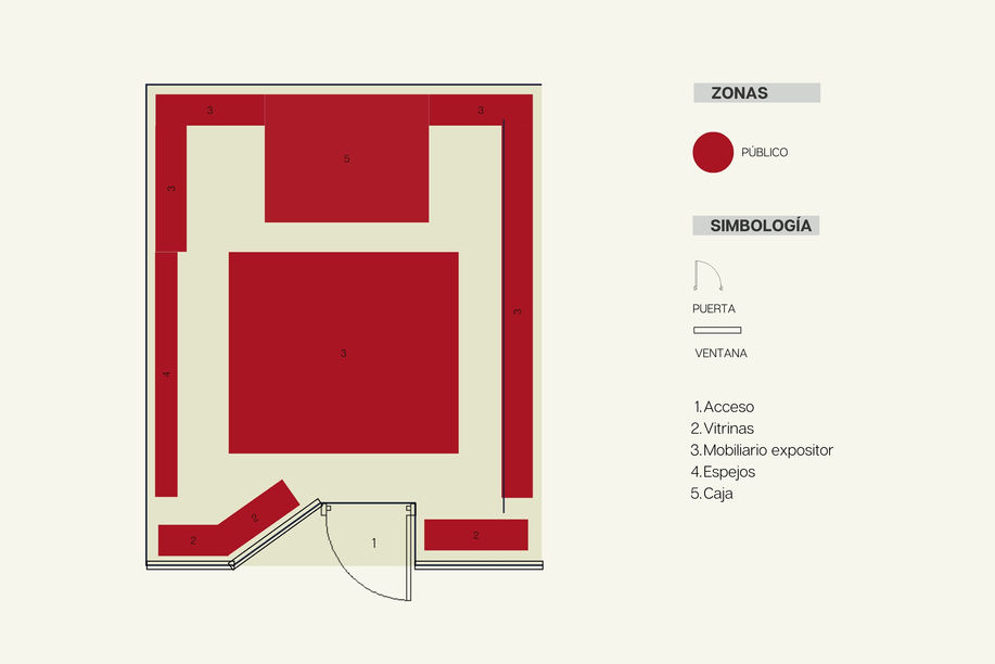 En este diseño de tienda de lentes de sol "Ray-Ban" el rojo vibrante junto con lo llamativo de las luces Led se convierte en el protagonista sobre un elegante fondo negro, creando un contraste impactante que atrae la atención y refleja la esencia audaz de la marca.